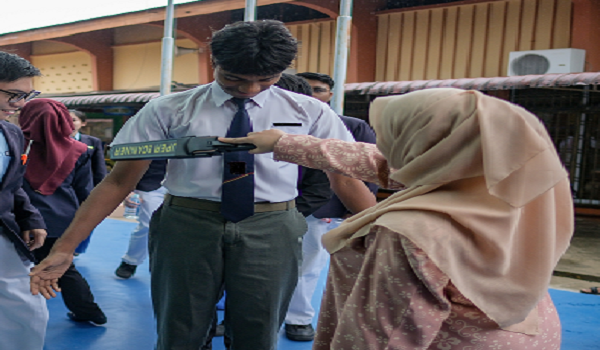 "Kita minta semua sekolah-sekolah supaya ada membuat pemeriksaan ke atas tubuh badan menggunakan metal detector dan kita ada 80 sekolah menengah di Melaka ini dan 43 telah melaksanakan pemeriksaan menggunakan metal detector dan selebihnya akan menggunakan cara sama.