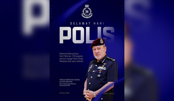 KUALA LUMPUR , 25 Mac – Yang di-Pertuan Agong Sultan Ibrahim menzahirkan ucapan Selamat Hari Polis Ke-219 kepada seluruh warga Polis Diraja Malaysia (PDRM)…